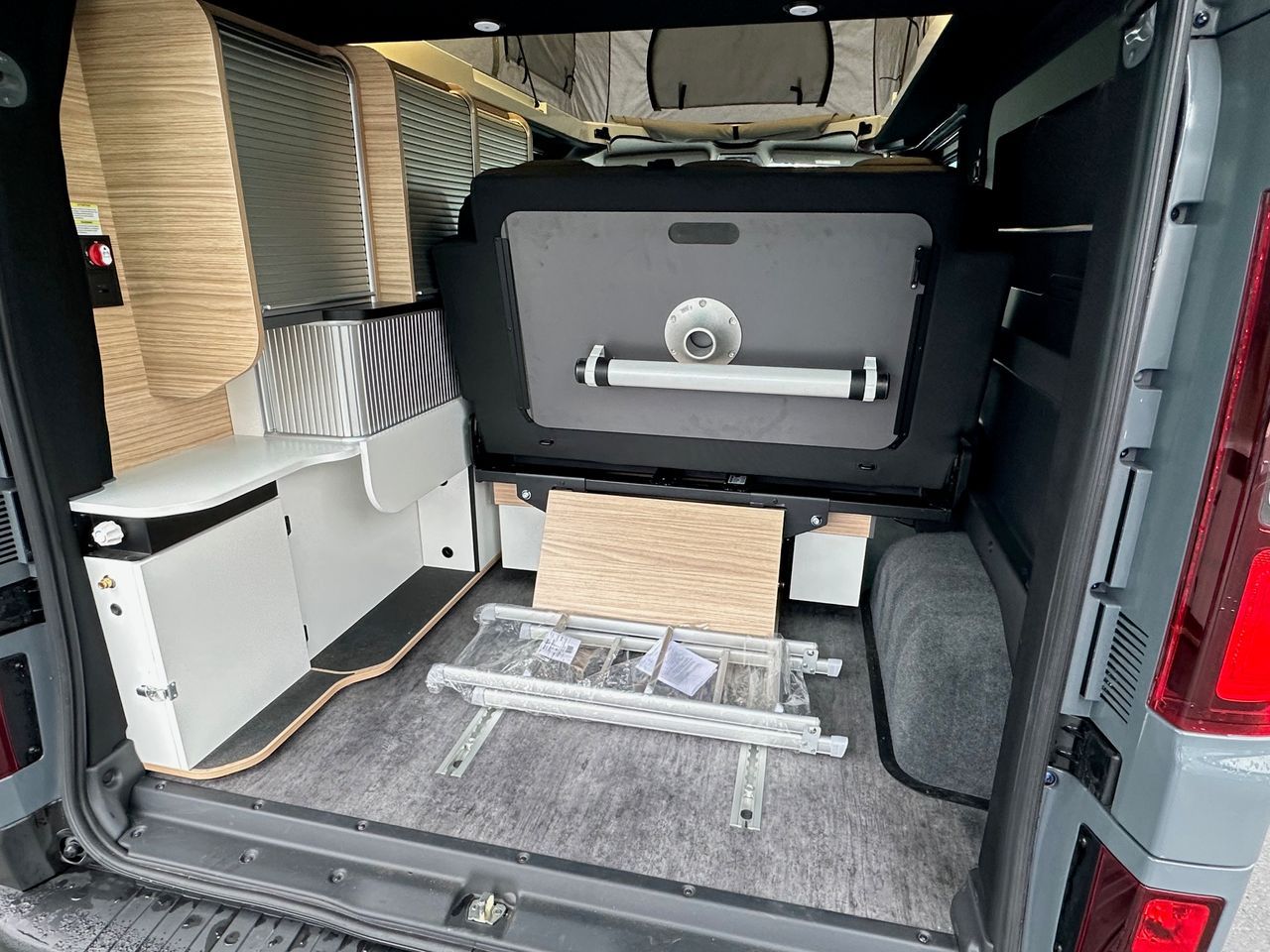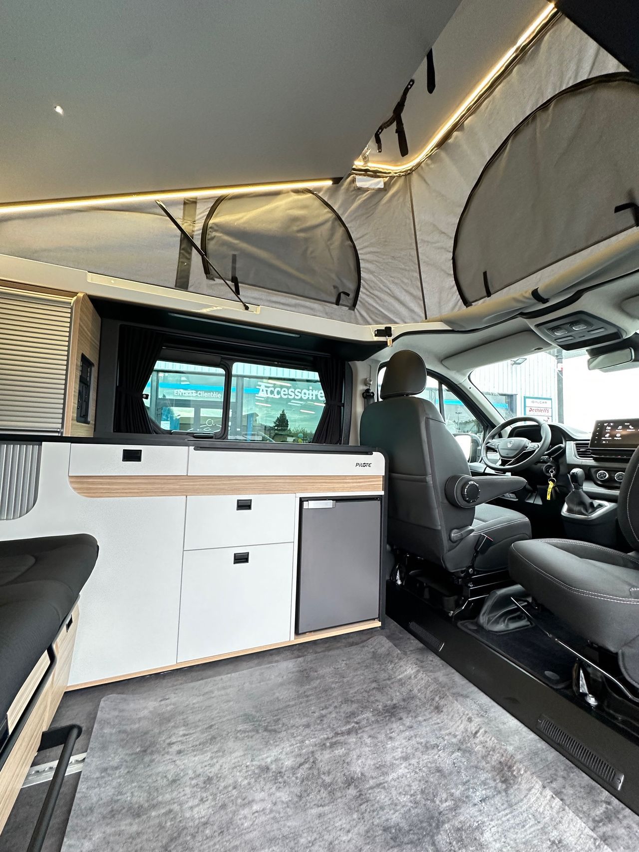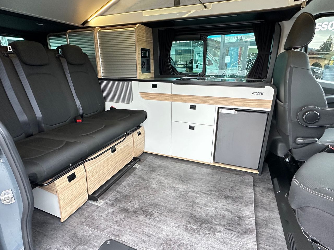Ce van aménagé Pilote est un véhicule polyvalent, adapté à une utilisation quotidienne. Il offre quatre places de couchage grâce à sa banquette arrière et son toit relevable. De plus, il dispose de nombreux espaces de rangement pratiques. Grâce à sa banquette coulissante, il est possible d'agrandir l'espace du salon ou du coffre selon les besoins.