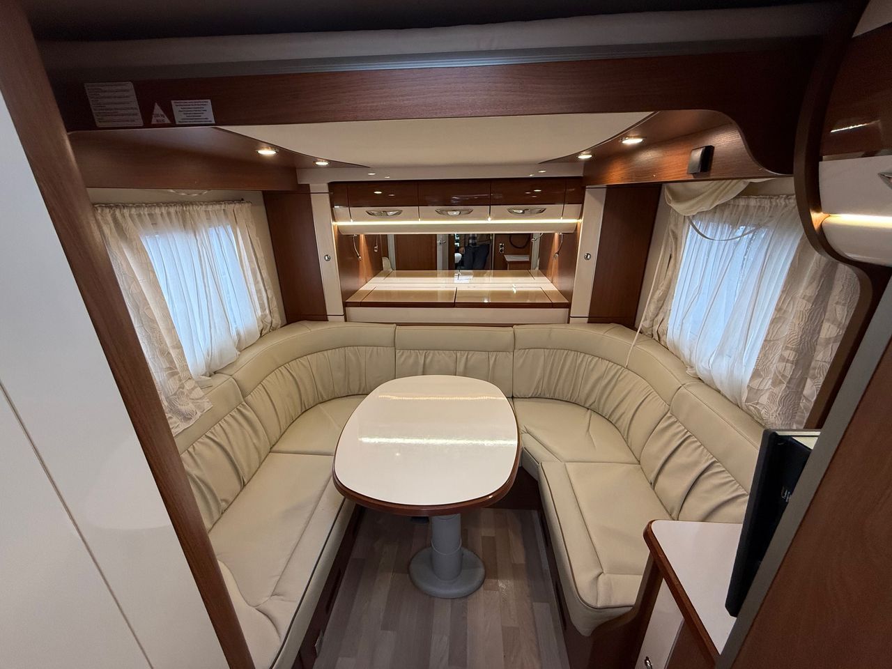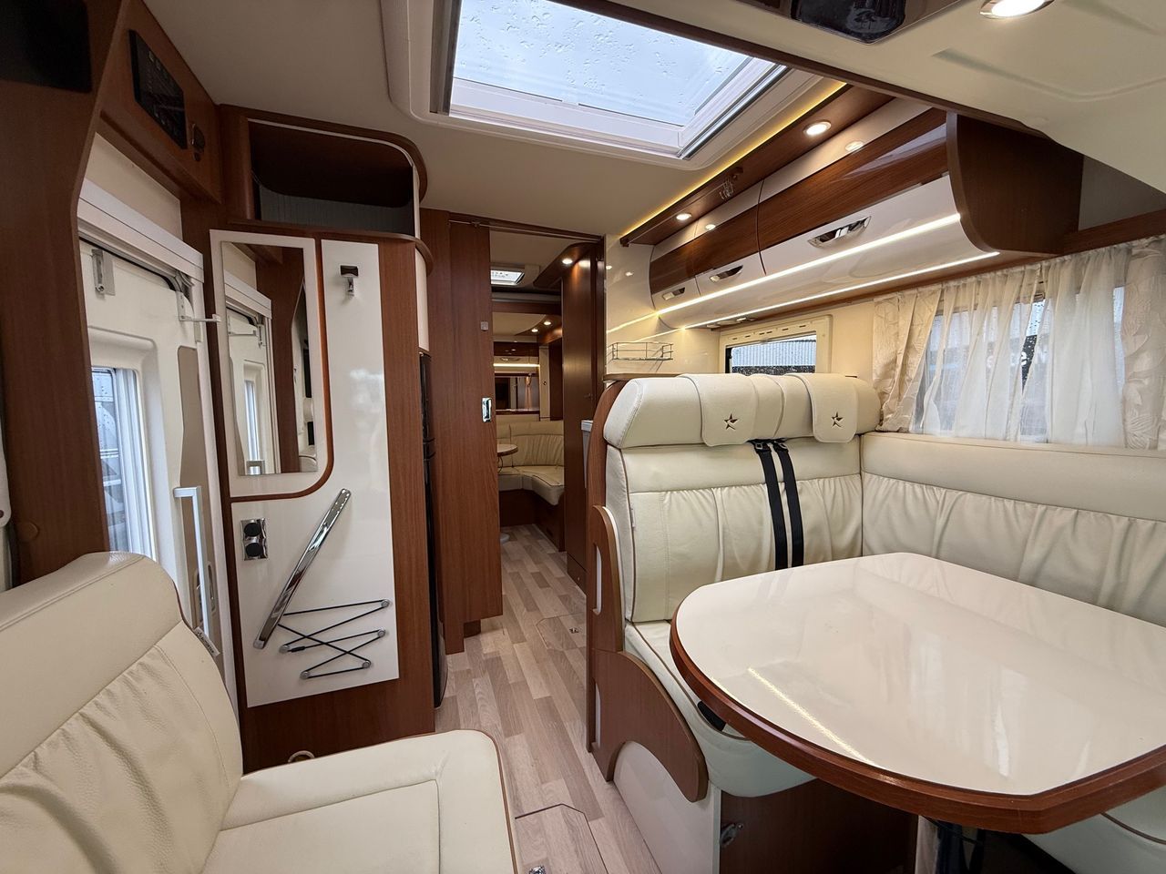 L‘Integral PASSION i720SUA saura vous séduire grâce à ses 2 salons qui invitent à la convivialité et au partage: 5 convives peuvent prendre place à l’avant et au-moins 6 dans le magnifique salon arrière en U, tout en galbe autant dans la sellerie que dans le mobilier.