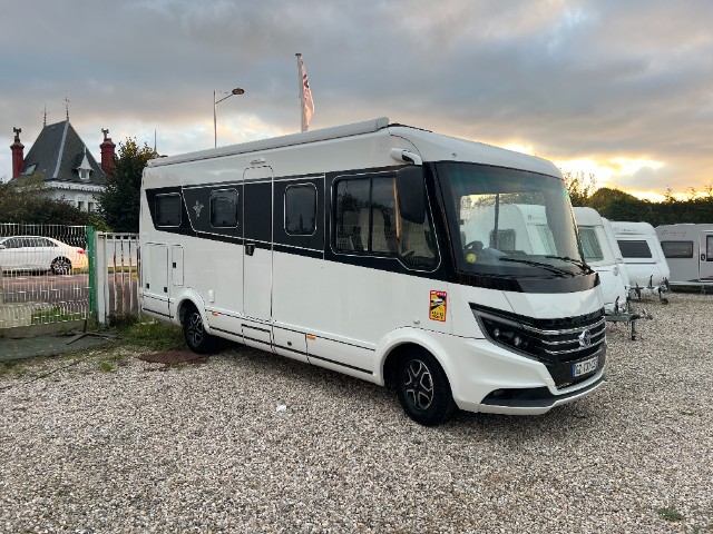 Fiat 2.2 l 180CV - BVA, diesel, 12/09/2024, Pack Confort, Placards pavillon Walnut Planked (noyer), Porte de soute côté conducteur, Tiroirs cuisine White Planked (mat), Verrouillage centralisé portes extér., Aération toilette SOG par le toit, Banquette avec 2 places suppl, Boîte de vitesses automatisée ZF AT9, Caméra de service (eaux usées), Chauffage à air pulse Combi 6 E, Clou Line Design (obligatoire), Coussins d'assise Temptation (cuir), Coussins de dossier cuir beige, Kiss, Decor lateral Maxi "Carbone optique", Décor personnalisé "Carbone optique", Détendeur Truma DuoControl CS, ECP - Pack Espace Cuisine Premium, Extincteur, Feux anti-brouillard à LED, Habillage paroi chambre, design carbone, Lit de pavillon manuel, Matelas suppl. entre lits jumeaux, Navigation avec écran tactile 9", PCC - Pack Confort Conduite, PM1 - Pack Multimédia 1 sans satellite, Prise 230V dans la soute garage, Précablage pour panneaux solaires, Préparation de l'auvent, Rangement coulissant côté passager, Ventilateur au-dessus de la cuisine, Vidange électr. du réservoir eaux usées