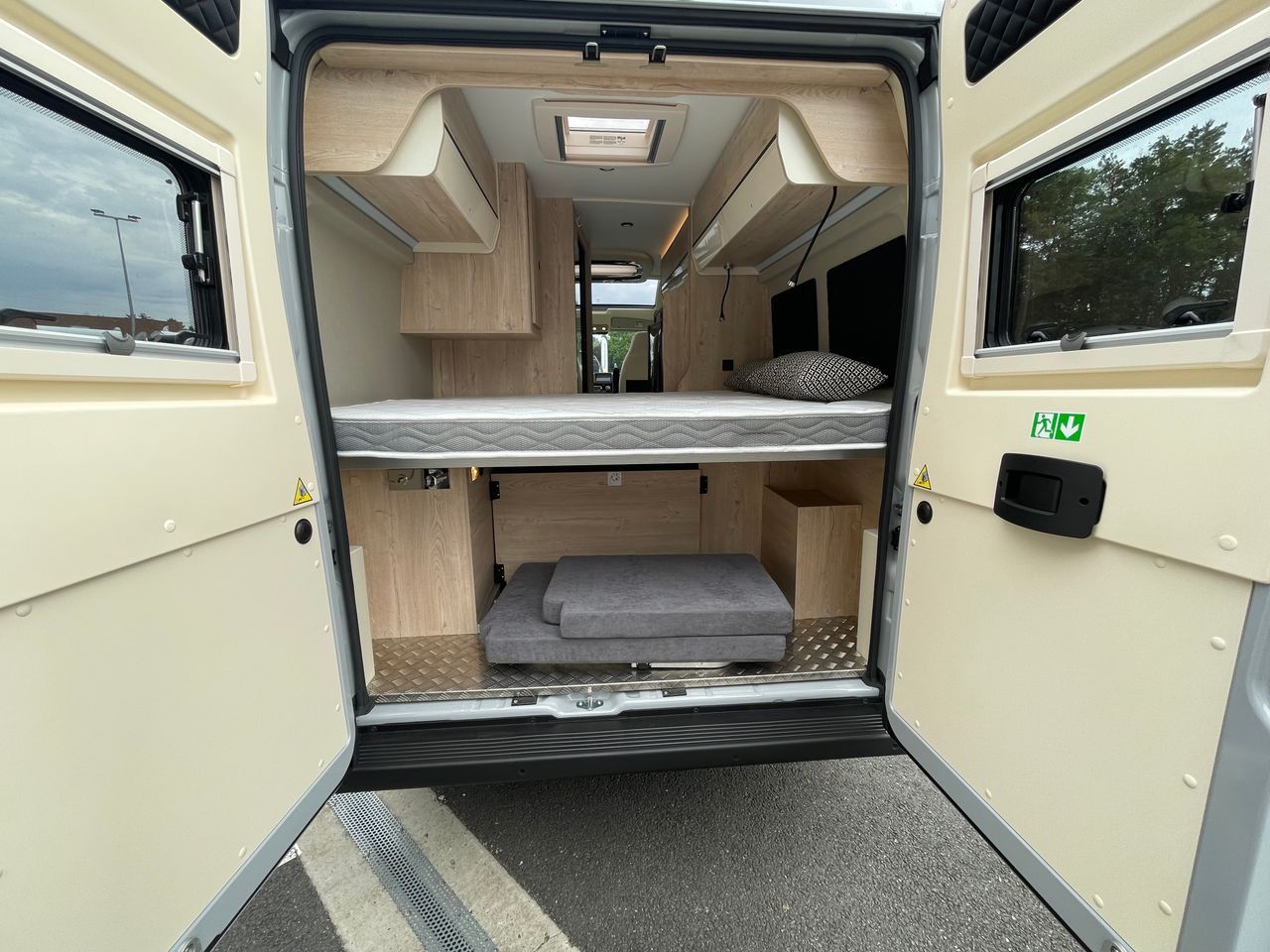- Pack Pearl : 4 500 € (Pack Pearl : Batterie cellule Lithium 100A - Pré-disposition attelage - Frein de stationnement électrique - Rétroviseurs électriques, dégivrants, rabattables électriquement - Caméra de recul intégrée - Réglage spécifique ESC - Porte moustiquaire ouvrant latéral - Dinette transformable en couchage - Réservoir d'eaux usées chauffé - Store Remis en cabine -Boite à gant centrale.)