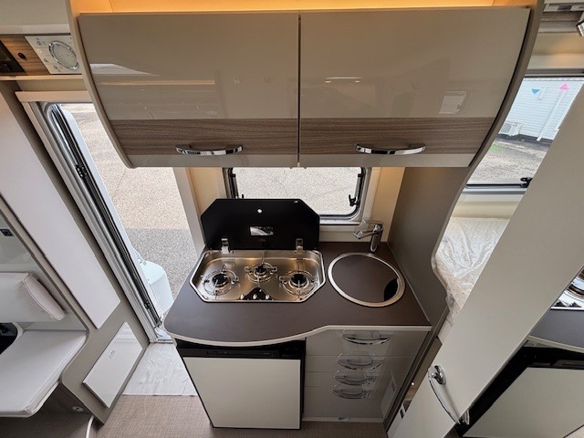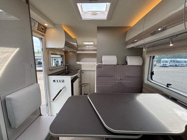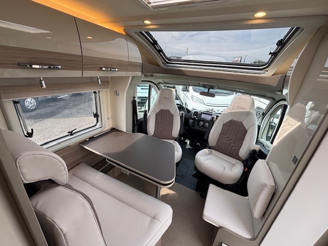PACK HARMONY LINE:sellerie exclusive, porte cellule centralisée avec baie et moustiquaire, stores plissés cabine, sun-roof, porte de soute côté gauche, home light, éclairages indirects