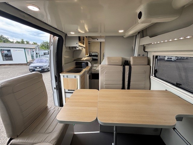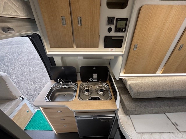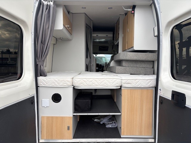 Doté d'une 5ème place carte grise de série, le Terravan peut accueillir 5 personnes en couchage, grâce à son intérieur parfaitement optimisé dans 6m de longueur. Son lit supérieur électrique vous permettra de moduler les lieux de vie sans effort. Les espaces cuisine et salle de bains sont pensés pour profiter au maximum de votre voyage.