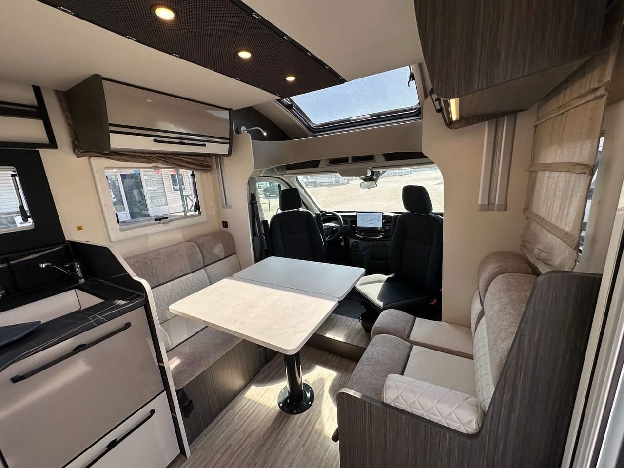 Pack Série 800 Mc4 Ford (Motorisation 165 CV ; Feux « High Séries » adaptatifs ; Boîte à gants avec serrure ; Habillages intérieurs et tableau de bord «Trend» ; Pare-chocs et bas de caisse latérales peints couleur de la carroserie; Porte XL à 2 points avec fenêtre et fermeture centralisée; Support TV 32 »; Skyroof ; Housses de siège coordonnées avec les tissus ; Panneau solaire 200 W avec régulateur MPPT ; Store occultants plissés cabine).