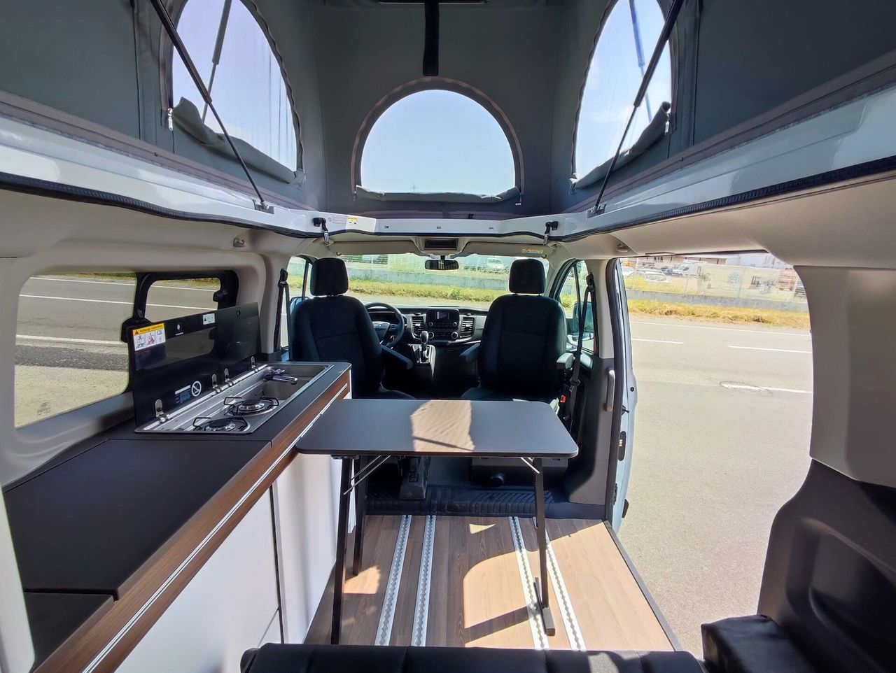 Peinture metal, Boite automatique 6 rapports, Marche pied de porte coulissante, Aide au stationnement avant et arriere 360°, Rail de montage pour auvent, 2 sieges supplement, Chauffage diesel webasto, systeme audio multifonction 8" avec navigation, Régulateur de vitesse adaptatif avec assistant pré-collision, Système d'alerte de changement de voie, Prise 230V supplémentaire, Douchette extérieur, peinture metal.