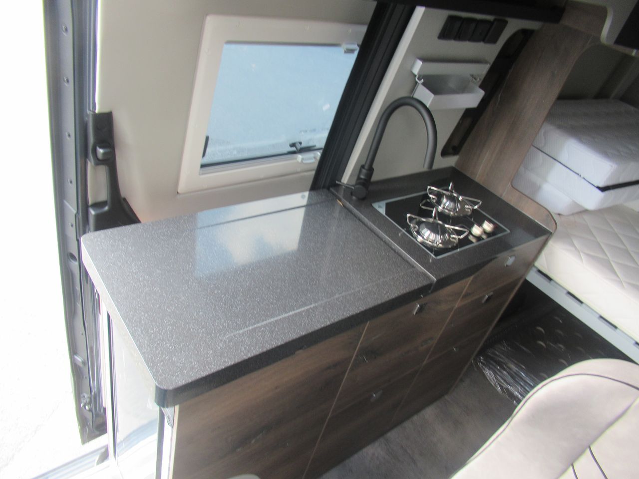 • Zone de couchage avec porte latérale et marchepied automatique