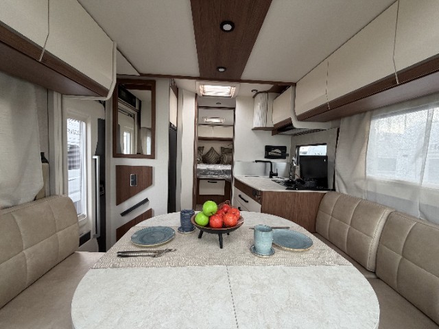 Fiat 2.2 l 140 CV-BVA- WELLNESS, diesel, Ambiance Noyer, Batterie lithium 100 Ah Antarion, Chauffage Truma 4000 DE, DC/ DC 40 Ah, Frein à main électrique, Pack allure : Jantes alu/aérareur gris/ volant cuir, Repose pied electrique ( uniquement sur siège passager), Réfrigérateur à compression 149L, Tissu Wellness