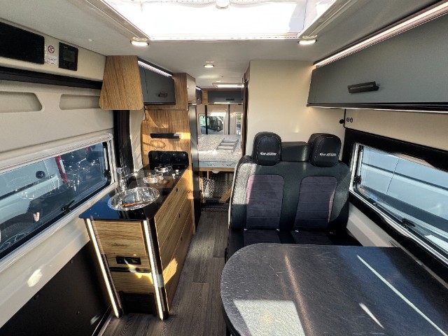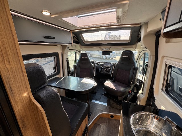 Fiat 2.2 l 140 CV-BVA-Elegance, diesel, Autonomie de la batterie lithium, Boite automatique de série, Chargeur de batterie DC-DC, Commande radio au volant + volant cuir, Grand lit pavillon arrière, Jantes alu 16", Pack Safety/ Traction +, Pack multimédia ZENEC : Androi auto + Apple Carplay, Panneau solaire de série, Pré-équipement TV, Régulateur de vitesse/ Limiteur de vitesse, Réservoir 90L, Rétro caméra de recul, Soute garage, Start & Stop, Store auvent, Ambiance Divina