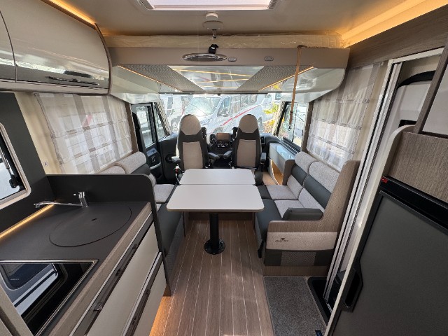 Fiat 2.2 l 140 CV BVA SELEKT, diesel, Caméra de recul, Chauffage Truma Combi 6 gas (6000W), Ecran tactile 9" Pioneer (Apple car play+ Android), Espace pour TV 32", Feux AR&AV full led, Isofix, Lit réglable en hauteur électriquement, Pré disposition pour 2 batteries lithium, Réfrigérateur à compression 158L, 2 portes, Régulateur de vitesse avec "Intelligence speed assist", Réservoir Diesel 90 L, Réservoir d'eau grise isolé et chauffé, Store d'occultation plissé cabine, Tissu Boréa [tissu + similicuir], Truma INET X (panneau de contrôle + APP)