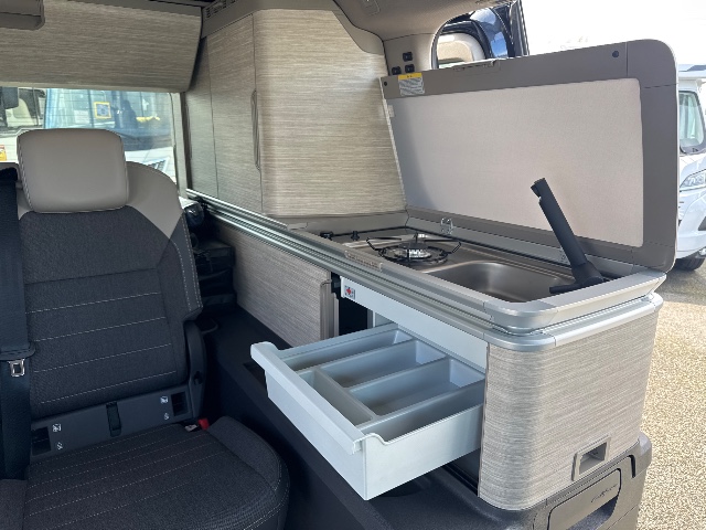 2 L 150 CH - DSG 7, diesel, 12/09/2025, première main, Boite automatique DSG 7, Peinture Blanc Candy et Starlight Blue Métallisé, Jantes alliages léger "Syrakus" 16 Pouces, Pack stationnement avancé, Dispositif d'attelage rabattable avec déverrouillage élect, (système de stabilisation de la remorque), App-Connect pour Apple Carplay et Android Auto, Climatisation 3 zones Air Care Climatronic, Chauffage stationnaire Camper sur carburant, Système de navigation Discover Pro avec écran de 25.4 cm, Store extérieur