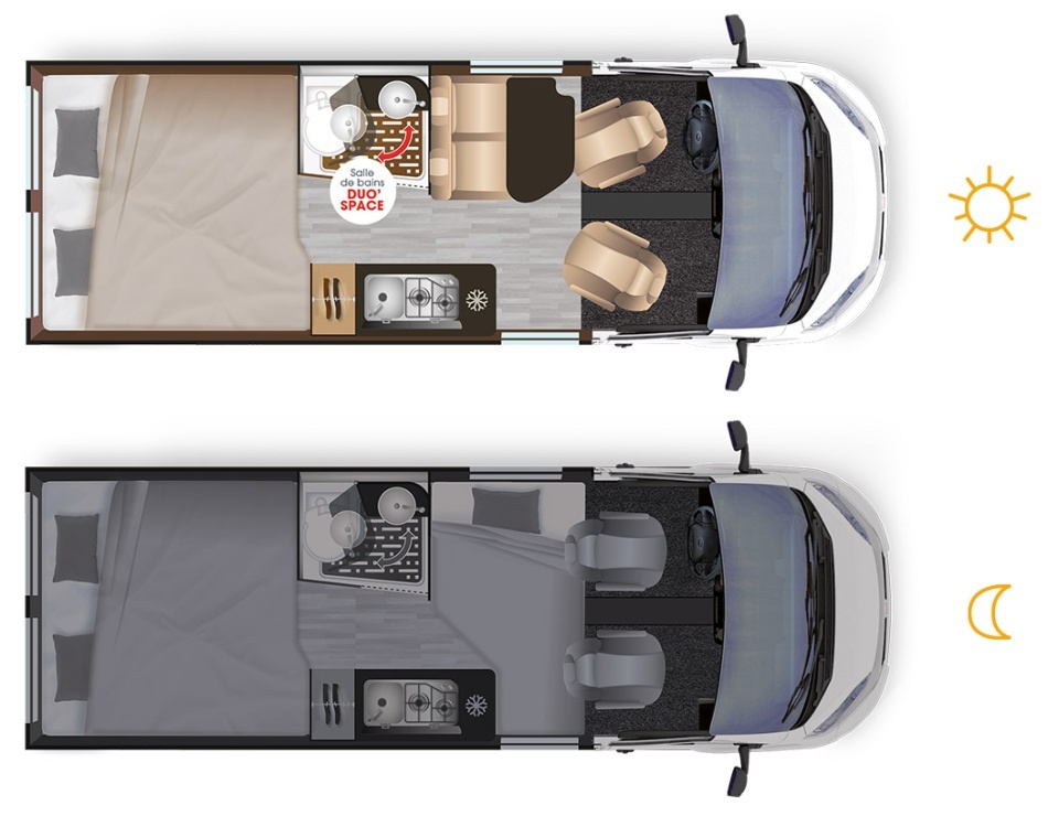 Salle d'eau DUO'SPACE avec paroi pivotante (D43 UP, CAMPER FIVE, CAMPER SPORT)