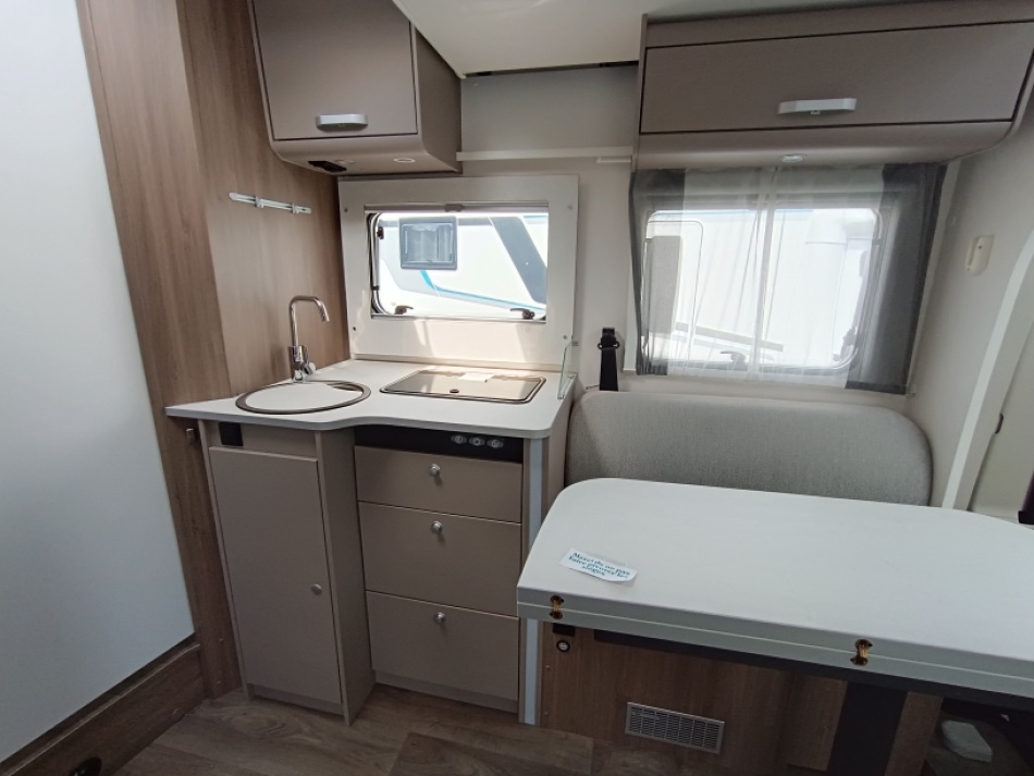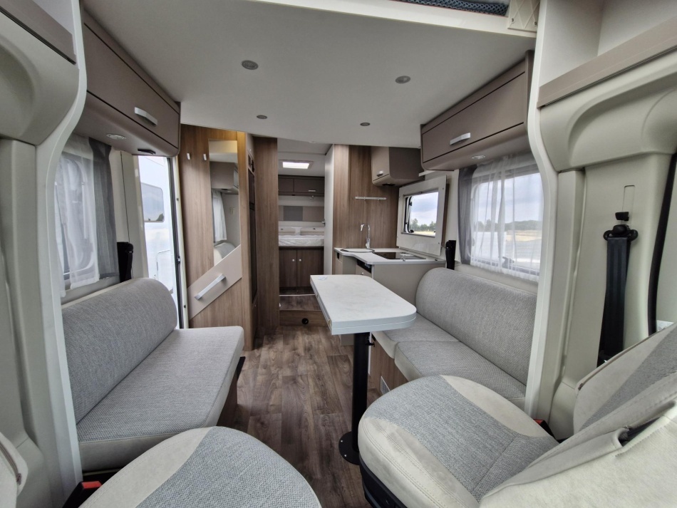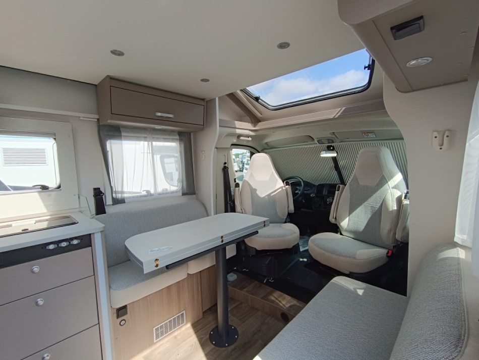 Très apprécié pour son agencement avec lits central et lit pavillon, il offre un intérieur lumineux, bien pensé, idéal pour voyager à deux ou à quatre.