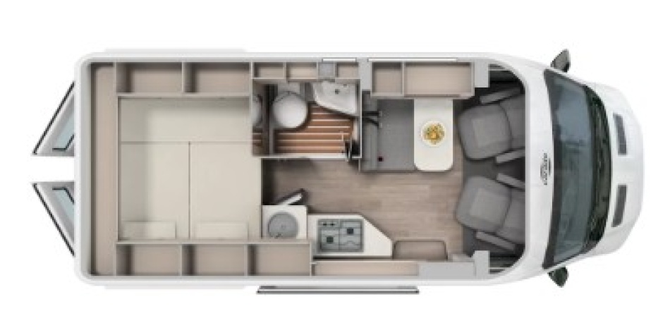 Compact et maniable avec ses 5,98 m de longueur, il passe partout, se gare facilement, et offre pourtant tout le nécessaire pour voyager à deux dans un vrai cocon. Grâce à sa transmission intégrale 4x4, vous pourrez vous aventurer sur les routes de montagne, les chemins de campagne ou les pistes enneigées en toute sérénité.
