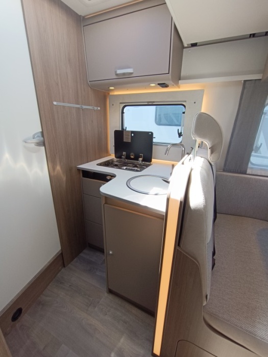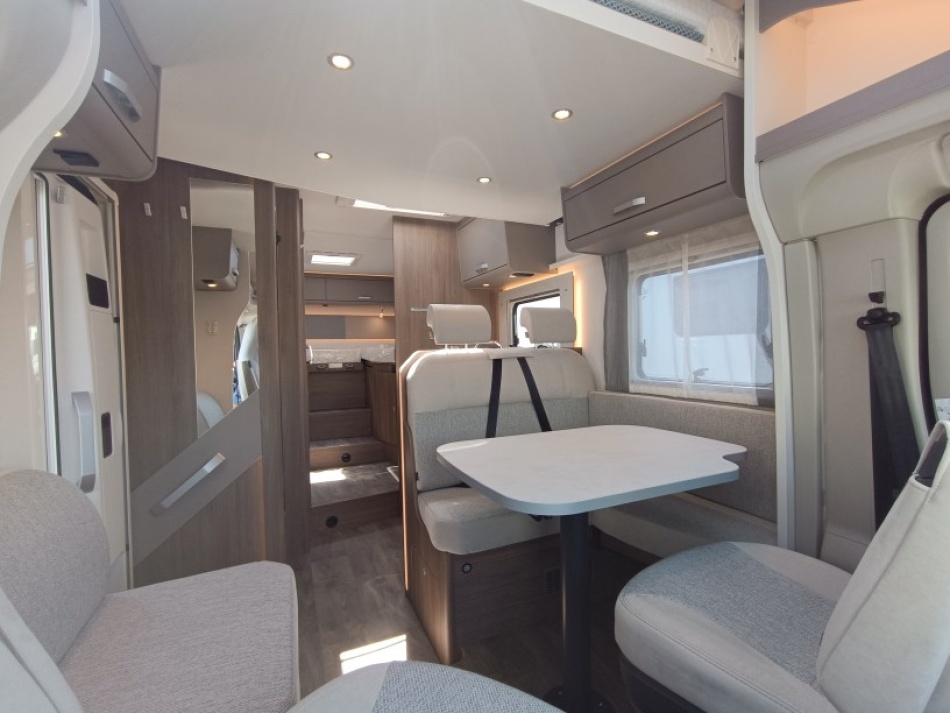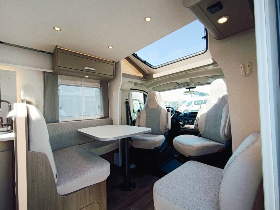 Très apprécié pour son agencement avec lits jumeaux arrière et lit pavillon, il offre un intérieur lumineux, bien pensé, idéal pour voyager à deux ou à quatre.