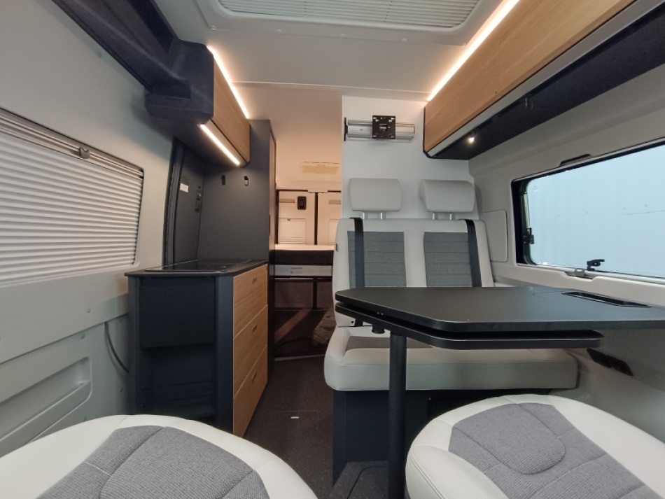 Avec son lit arrière électrique réglable en hauteur et ses rangements modulables, ce fourgon est taillé pour l’aventure sans compromis, en offrant à la fois polyvalence et raffinement.