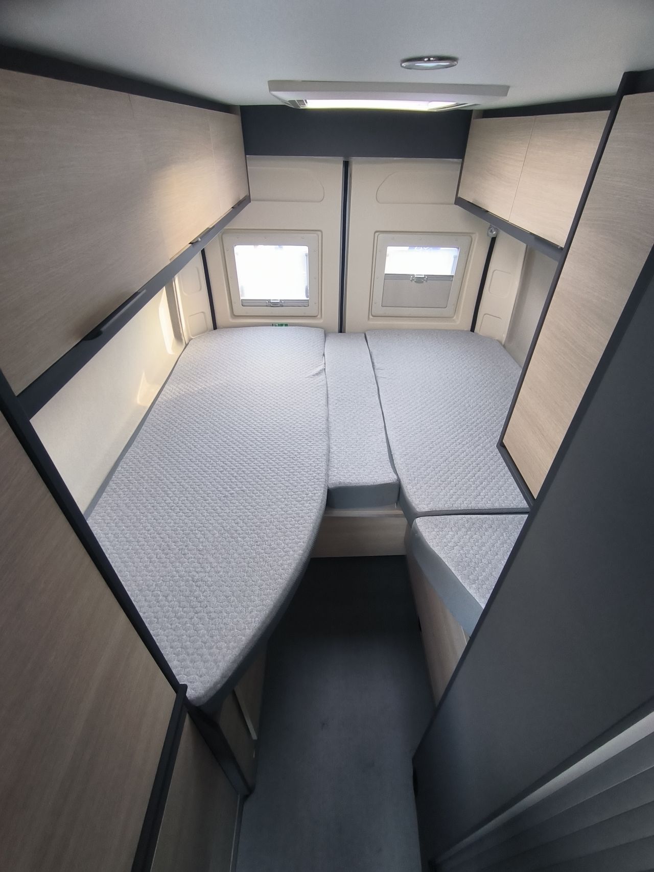 PACK START : marchepied électrique, stores pare-brise et baies cabine double pliées et cassette, porte moustiquaire ouvrant latéral