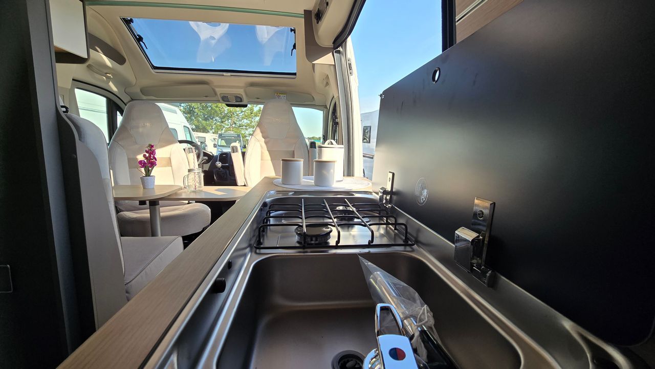 Ce fourgon aménagé de 5.41 mètres greffé au fiat ducato 140 ch et son lit transversal arrière offre ce que l'on peut attendre d'un fourgon : compact, finition soignée, un agencement bien pensé.