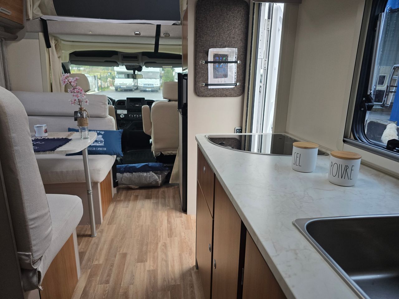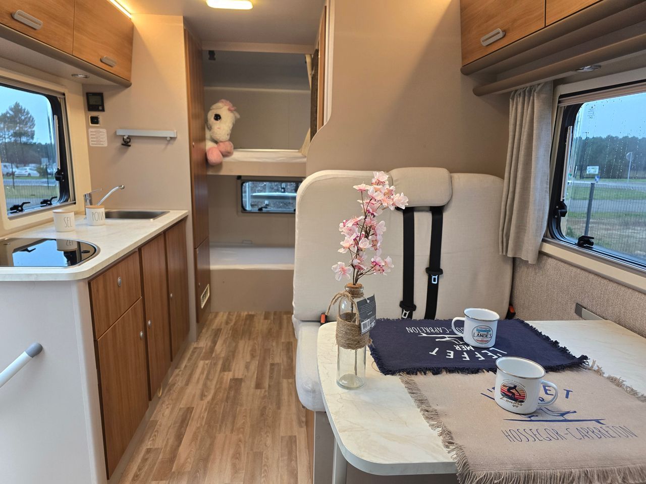 Camping-car de 6.81 m familial avec 6 couchages et 6 places carte grise.