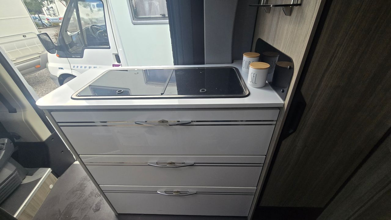 L'implantation est composée de deux grands couchages lit jumeaux et lit dînette, d'une vraie salle de bain, d'un grand réfrigérateur et son salon accueille quatre personnes.