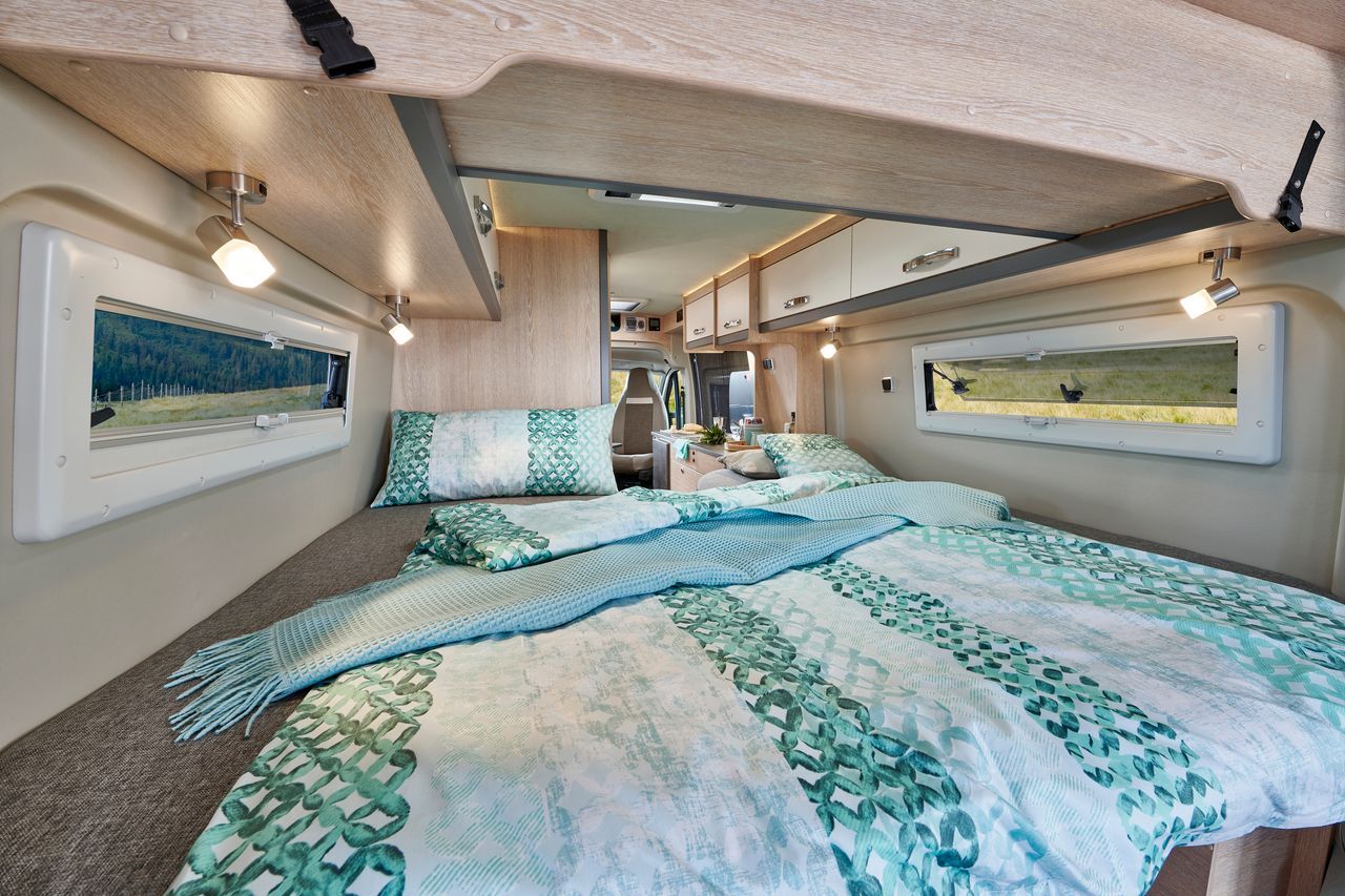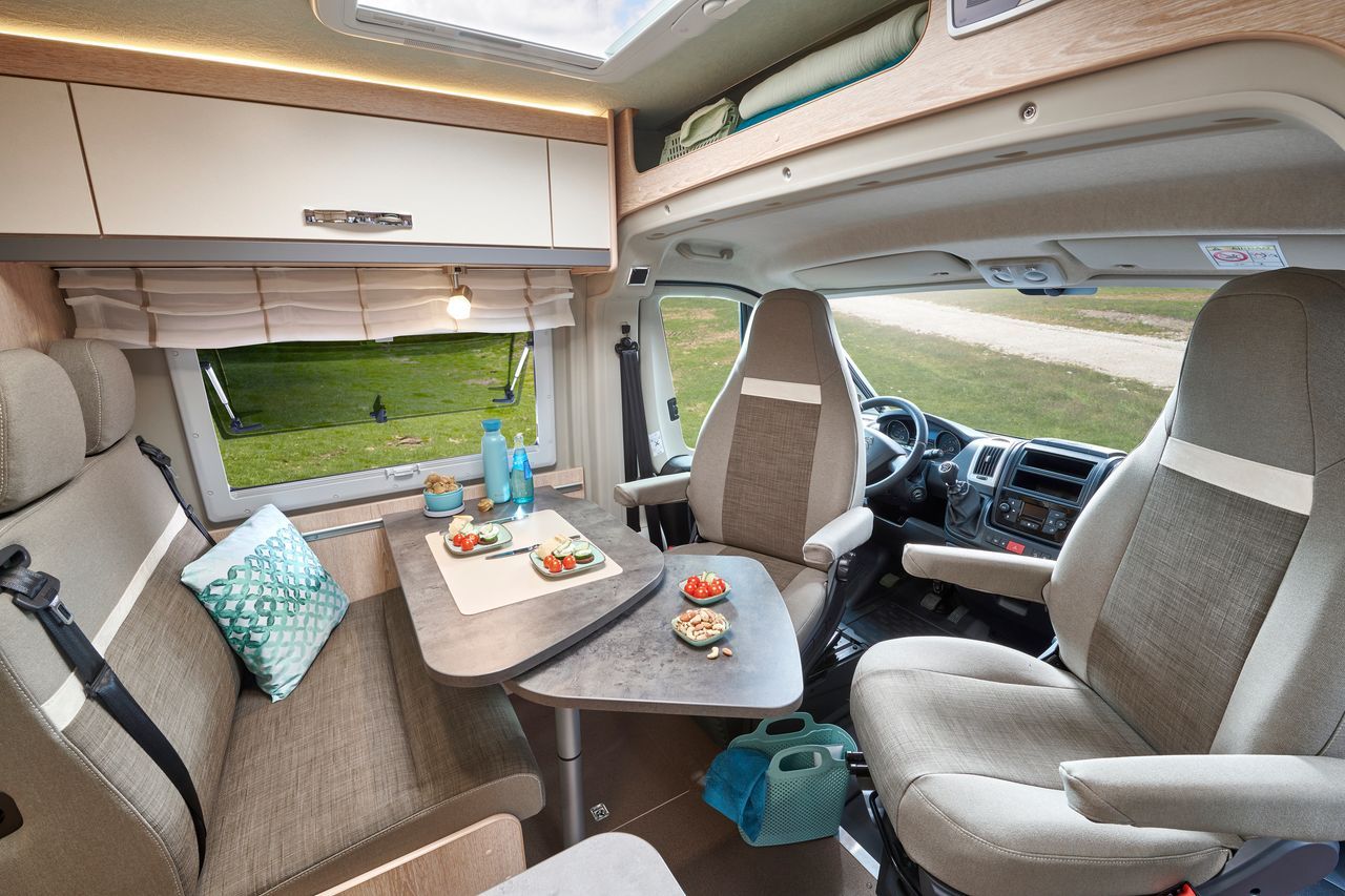Sa dinette agréable et lumineuse pour une ambiance conviviale. Sa cuisine latérale pratique et fonctionnelle est équipée d’un réchaud 2 feux, évier et plan de travail rabattable. En face, une salle d'eau avec WC, lavabo, et une douche spacieuse. A l’arrière, ce sont des lits jumeaux, pour des nuits confortables et agréables, et plus d’espace. Sans oublier ses nombreux rangements astucieux !