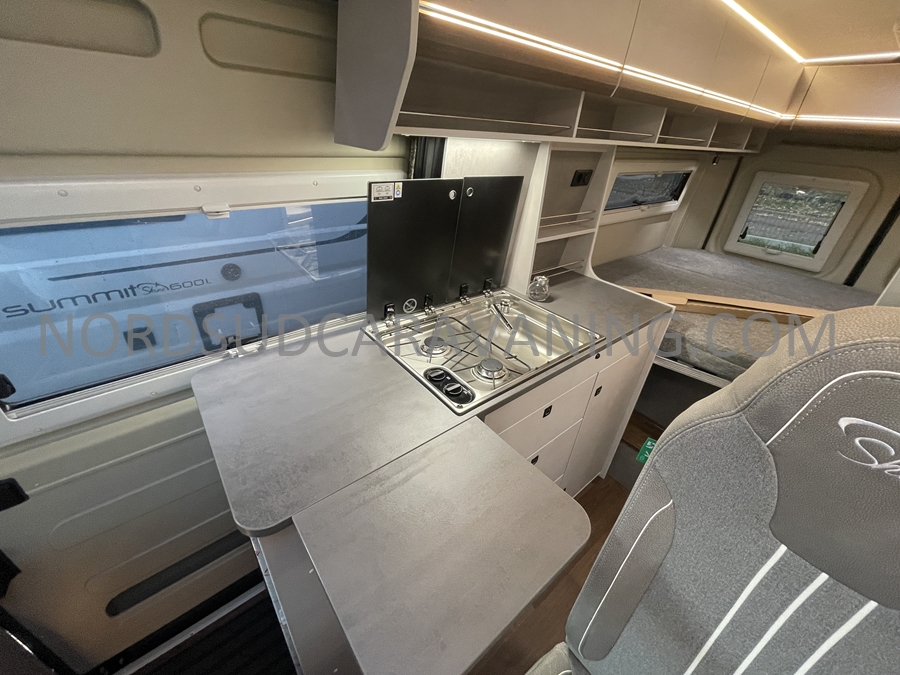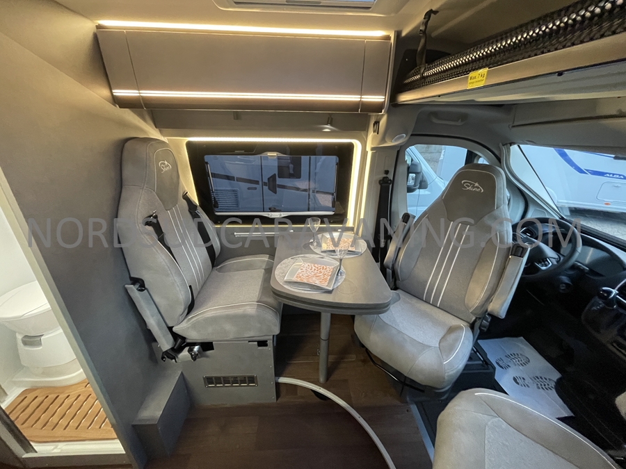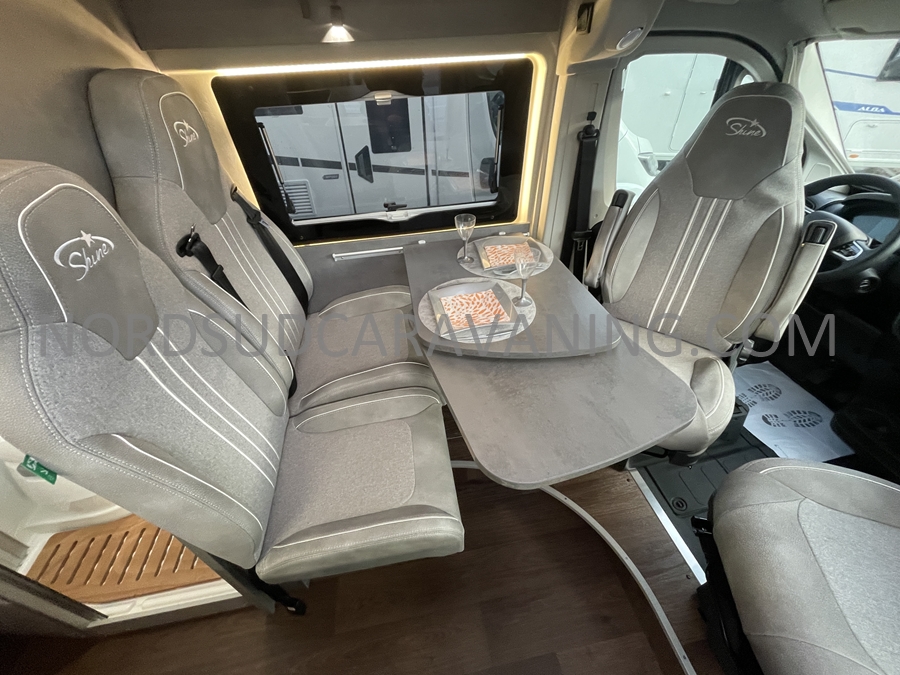Sa dinette agréable et lumineuse pour une ambiance conviviale. Sa cuisine latérale pratique et fonctionnelle est équipée d’un réchaud 2 feux, évier et plan de travail rabattable. En face, une salle d’eau avec WC, lavabo, et une douche spacieuse. A l’arrière, c’est un lit transversal, pour des nuits confortables et agréables. Sans oublier ses nombreux rangements astucieux !