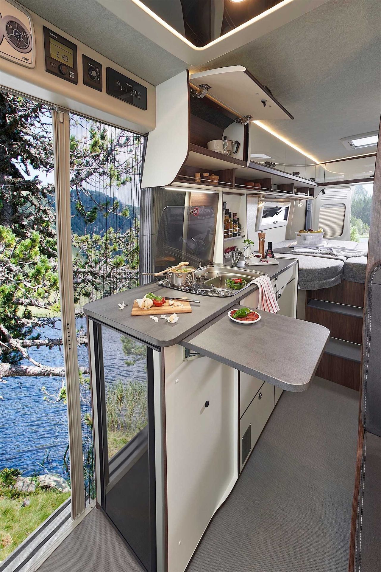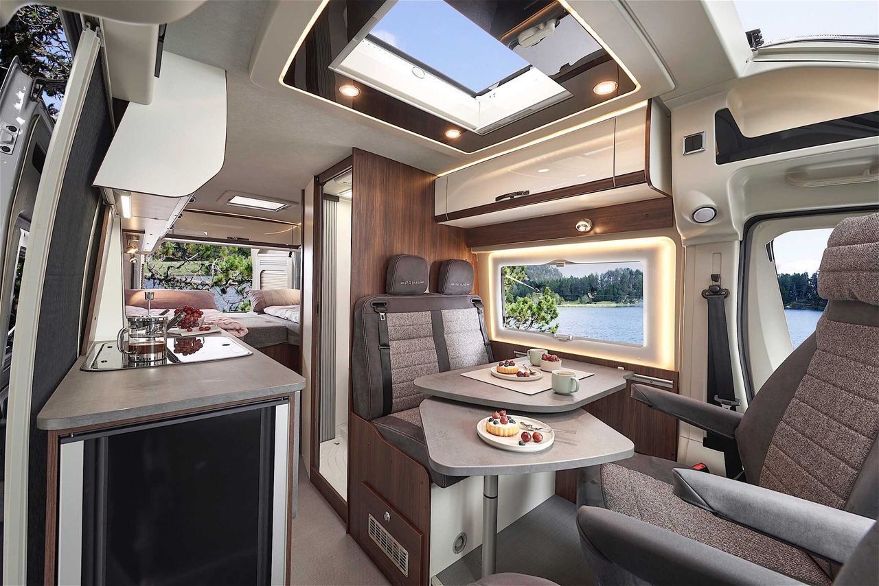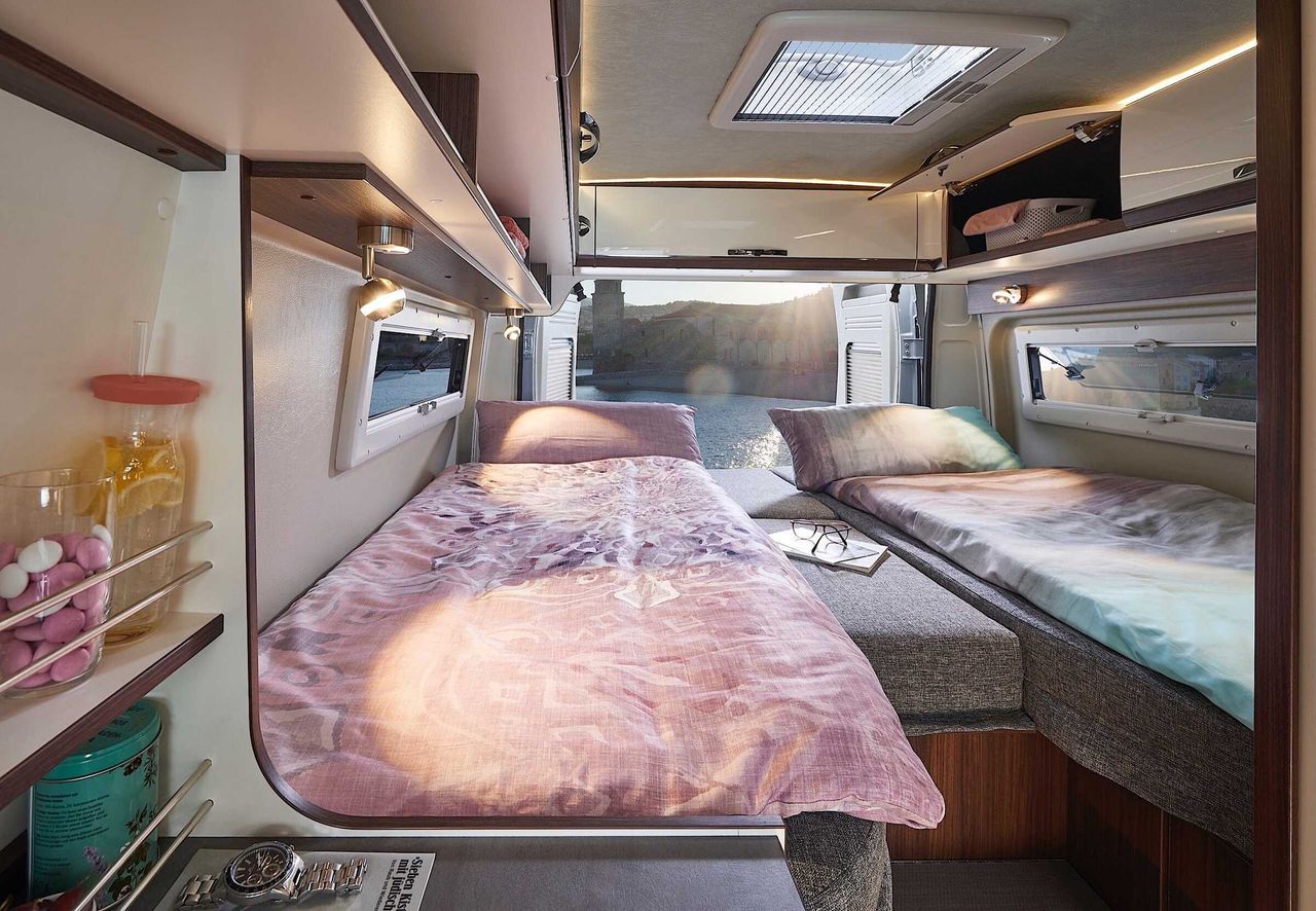 Sa dinette agréable et lumineuse pour une ambiance conviviale. Sa cuisine latérale pratique et fonctionnelle est équipée d’un réchaud 2 feux, évier et plan de travail rabattable. En face, une salle d’eau avec WC, lavabo, et une douche spacieuse. A l’arrière, ce sont des lits jumeaux, pour des nuits confortables et agréables. Sans oublier ses nombreux rangements astucieux !