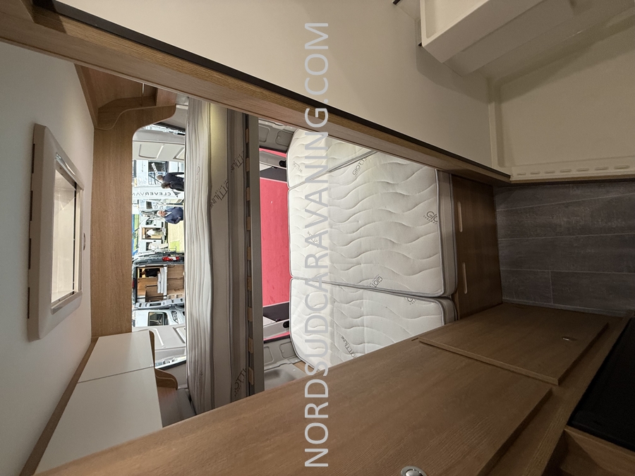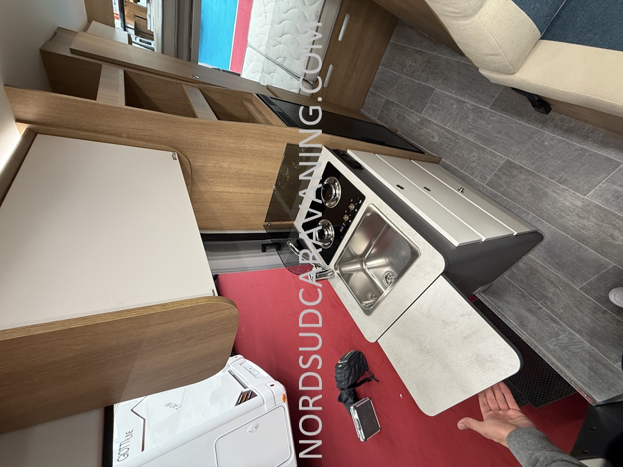Le GiottiVan 60 BE YOUNG Edition limitée est le fourgon idéal pour ceux qui recherchent un style de voyage jeune, dynamique et sans compromis. Avec ses 5,99 mètres de long, il propose un aménagement optimisé avec des lits superposés doubles modulables à l'arrière qui permettent selon les besoins de chacun de bénéficier de trois configurations : deux lits doubles superposés, un lit double en bas et une couchette en haut, ou alors un seul lit double en position basse. Une cuisine compacte et fonctionnelle avec réfrigérateur à compression, et une salle de bain avec douche intégrée. L'espace de vie est lumineux et convivial, pensé pour partager des moments de détente ou des repas en bonne compagnie. Les rangements sont bien répartis, parfaits pour voyager avec du matériel sportif ou des bagages.