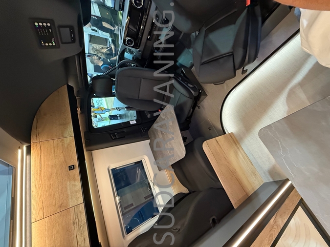 Ce magnifique fourgon tout-terrain vous emmènera partout où vous le souhaitez. Sa dinette 2 places lumineuse et agréable pour passer de bons moments en toute convivialité. Sa cuisine latérale pratique et fonctionnelle équipée d’un réchaud 2 feux, d’un évier en inox, d’un réfrigérateur à compression à double ouverture. En face, son coin salle de bain avec WC à cassette, lavabo, bac de propreté et miroir. A l’arrière, c’est un lit transversal XL grâce à l’extension de carrosserie pour des nuits confortables et agréables. Sans oublier ses nombreux rangements astucieux.