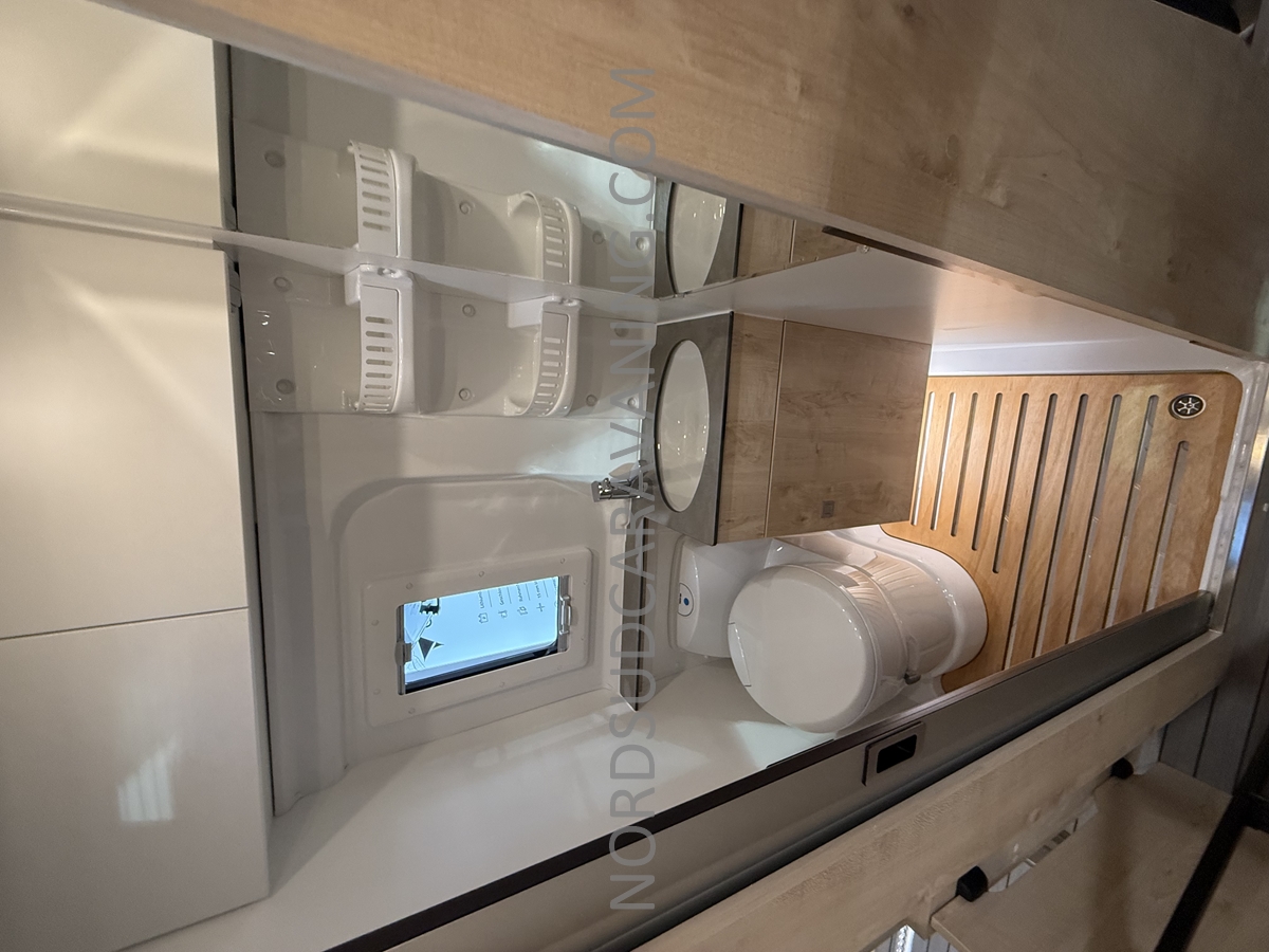 Ce magnifique fourgon sur Citroën Jumper est équipé d’une dinette agréable et lumineuse de 4 personnes pour passer de bons moments en toute convivialité. Sa cuisine latérale fonctionnelle dotée d’un réchaud 2 feux, d’un évier inox, de couvercles en verre, d’un grand réfrigérateur et d’un plan de travail haute résistance avec une rallonge qui raviront les cuisinières et cuisiniers. En face, une salle d’eau avec WC à cassette, lavabo, miroir, douchette et caillebotis. A l’arrière, vous y retrouverez un lit longitudinal réglable en hauteur pour des nuits agréables et confortables. Sa grande soute vous permettra de ranger vos vélos lors de vos retours de balades. Sans oublier ses nombreux rangements astucieux.