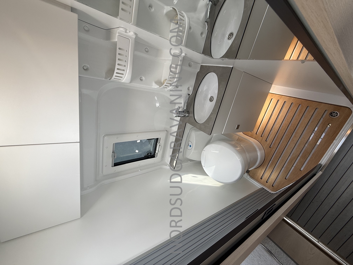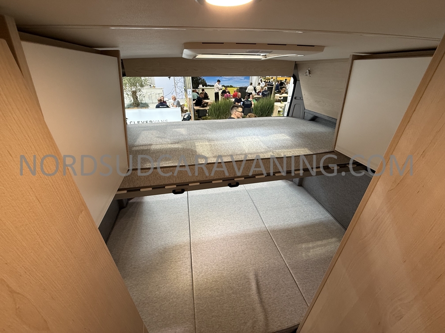 Ce magnifique fourgon sur Citroën Jumper est équipé d’une dinette spacieuse et lumineuse de 4 personnes, parfait pour jouer et se réjouir ensemble. Sa cuisine latérale fonctionnelle dotée d’un réchaud 2 feux, d’un évier inox, de couvercles en verre, d’un grand réfrigérateur et d’un plan de travail haute résistance avec une rallonge qui raviront les cuisinières et cuisiniers. En face, une salle d’eau avec WC à cassette, lavabo, miroir, douchette et caillebotis. Grâce à son intérieur modulable, vous y retrouverez des lits superposés avec le lit supérieur amovible, idéal pour partir avec vos enfants ou vos petits-enfants. Les atouts d’un lit transversal dans un fourgon astucieux de 6m, idéal pour des escapades spontanées. Emportez ce dont vous avez besoin avec ses nombreux rangements astucieux.