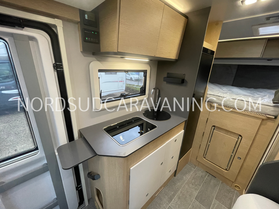 Grâce à sa forme compacte, sa maniabilité vous permettra de circuler ou de vous garer facilement. Vous profiterez d’un grand couchage à l’arrière avec son lit transversal, idéal pour vous garantir un sommeil en toute tranquillité. Son espace dinette agréable et convivial se transforme également en couchage supplémentaire grâce à son lit pavillon. Sa cuisine fonctionnelle grâce à ses systèmes de rangements optimisés est équipée d’une plaque de cuisson 2 feux gaz, un évier inox, un grand réfrigérateur à compression. Son coin toilette agréable avec WC, Lavabo et douche. Sans oublier sa soute volumineuse idéale pour ranger vos vélos, de retour de balades et ses nombreux rangements astucieux !