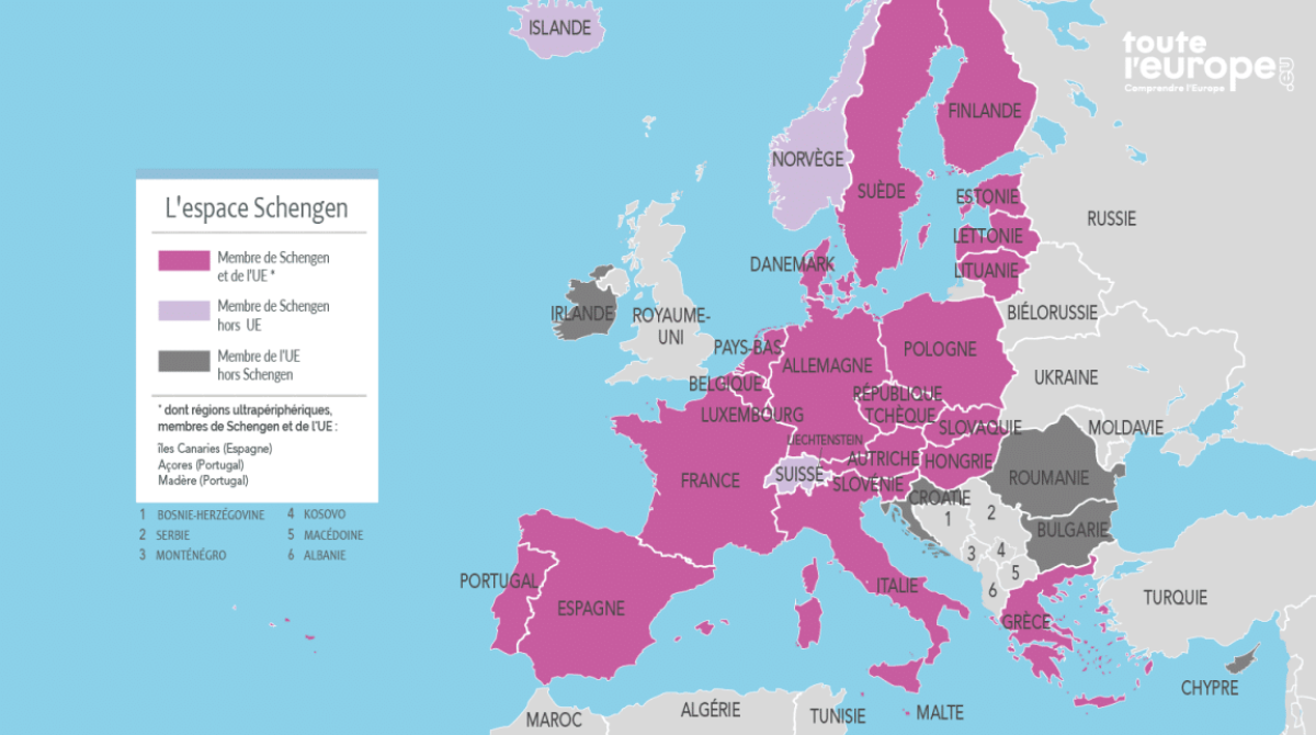Il faut rappeler que la même réglementation s'applique dans l'ensemble des pays de l'espace Schengen. Vous avez l'obligation de respecter le Code de la route du pays dans lequel vous circulez, si vous ne voulez pas risquer des poursuites. Ci-dessous, la carte des pays appartenant à l'espace Schengen.image