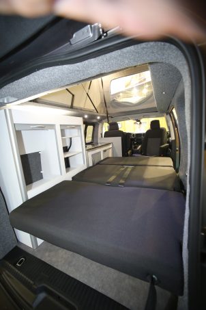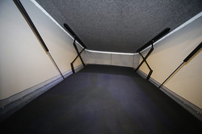 Ce quatre places (route et nuit) n’en est pas moins très compact. Il se faufilera partout ou pourra remplacer un SUV ou un monospace au quotidien. Tout en répondant aux besoins d’un couple ou d’une famille, au cours de sorties loisirs. Pour les couchages, le 3005 est pourvu d’un premier lit de 120 x 200 cm grâce à la banquette convertible, mais également second couchage double, de 110 x 193 cm, installé sous le toit relevable. Ce dernier rappelons-le, est constitué d’une épaisse toile à base de PCV, garantissant une meilleure isolation, avec ses pantographes implantés à l’intérieur pour les préserver au maximum de l’usure.
