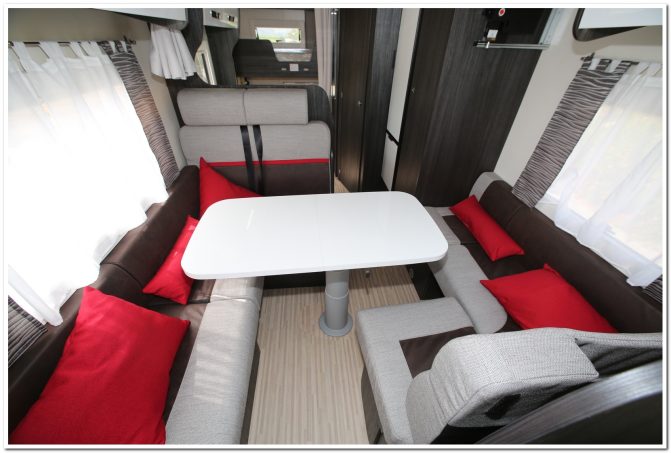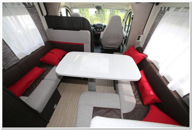 Benimar propose avec son mileo224, un profilé familial de 6 places sur la carte grise et autant de couchages. Dans l’espace salon, une grande table centrale est encadrée par deux banquettes en L, disposées en vis-à-vis. Les sièges de la cabine quant à eux, sont fixes mais les assises suffisent à recevoir confortablement 6 personnes. La nuit, elles pourront être converties pour laisser place à un lit double.