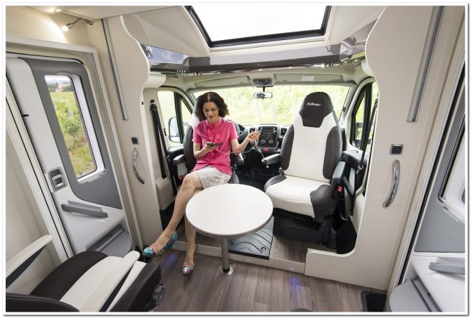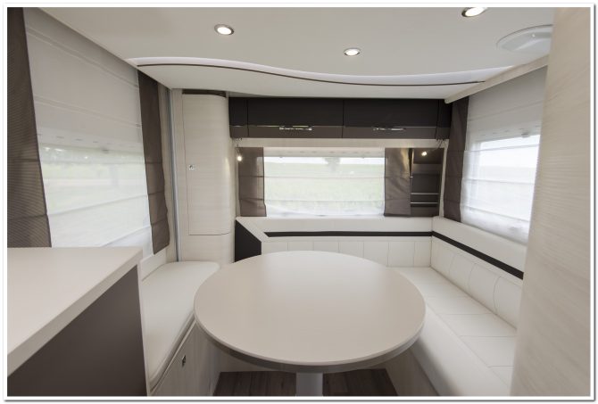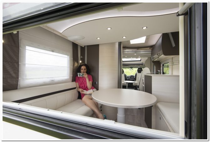 Ce profilé 291 Cruise Edition est proposé en version spéciale par le constructeur français Challenger. Et la particularité de ce camping-car réside dans l’originalité de son agencement ! En effet, à bord deux salons occupent chaque extrémité du véhicule. Le premier, accessible par l’une des deux portes cellules, s’agence autour d’une petite table centrale. Le second salon dispose quant à lui d’une grande banquette en L et d’une plus large table sur pied électrique.