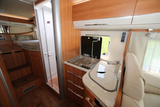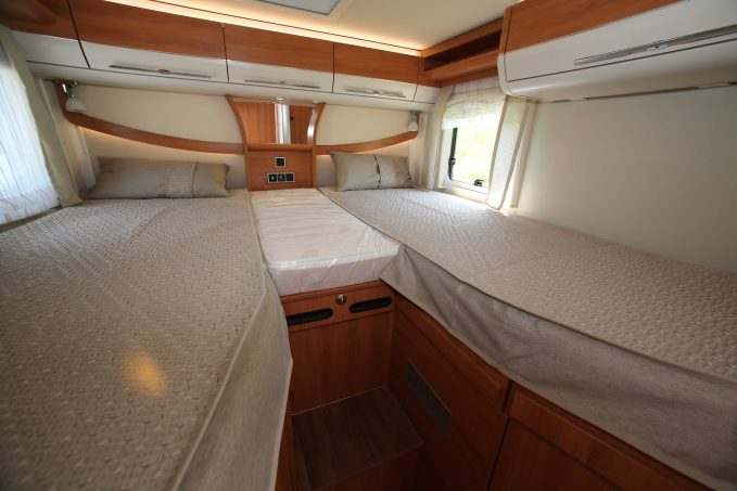 Dans la partie nuit, la qualité du couchage est indéniable avec ses lits jumeaux aux belles dimensions. Le sommier à assiettes Fröli et le matelas est également de qualité. Question équipement, le véhicule est bien doté : climatisation cabine, ESP avec Traction +, double plancher, commande de vidange de puis le tableau de bord, feux diurnes à leds… Et si cela ne suffit pas, vous pourrez, en option, ajouter une caméra de service placée à hauteur de l’évacuation d’eau, pour vous arrêter au plus près des grilles de dépotage, ou convertir le couchage cabine en lits jumeaux. Quant au prix, il faudra compter au minimum 92 000 euros pour vous offrir cet Hymer B-DL 678.