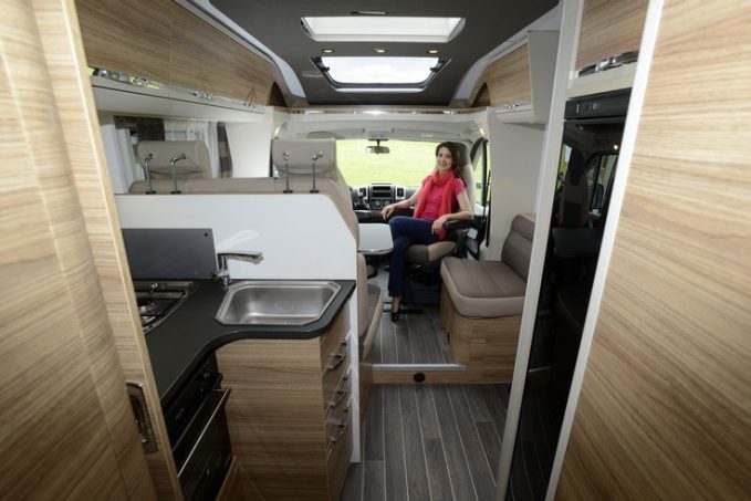 Pour le reste, le modèle reste fidèle aux standards Adria avec une belle dotation standard : régulateur, la clim cabine, les radars de recul ou encore en partie salon du lanterneau panoramique idéalement associé au sky-roof logé dans la jolie casquette de profilé.