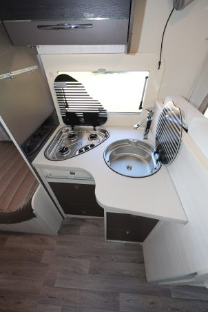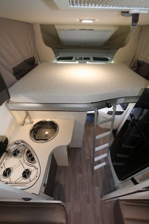 S'il est possible d'hésiter entre un porteur Ford ou Fiat, dans les deux cas, mieux vaut opter directement pour la finition supérieure Welcome afin de jouir pleinement de tout le confort de ce profilé. L'écart de prix (4000 €) avec la finition Flash est justifié par la présence d'une pléthore d'équipements (réfrigérateur AES de 175 l, housses de sièges cabine assorties à la sellerie du salon, lanterneau panoramique, leds d'ambiance, etc). Le montage de la nouvelle Technibox, regroupant toutes les parties techniques (eau et électricité) en un même point est un plus appréciable.