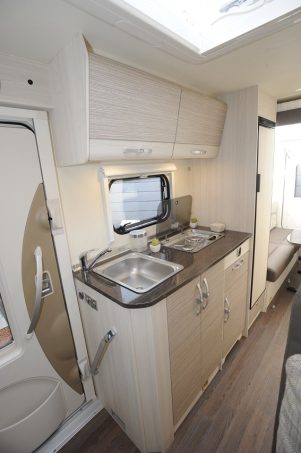 Le nouveau mobilier bicolore Ambra Rio fait de l’effet, mais surtout, le petit profilé Bürstner ne se prive pas d’une qualité de construction optimale (isolant XPS), toit et sous plancher polyester, ni d’un niveau d’équipement très correct avec clim cabine et grand réfrigérateur. Vous optimiserez sa dotation en passant par le pack Confort (airbag passager, régulateur de vitesse, fermeture centralisée, porte cellule Hartal avec baie et moustiquaire, autoradio Pioneer et système de chauffage en roulant avec inverseur de gaz intégré) ce qui représente un surcoût de 1390 €.
