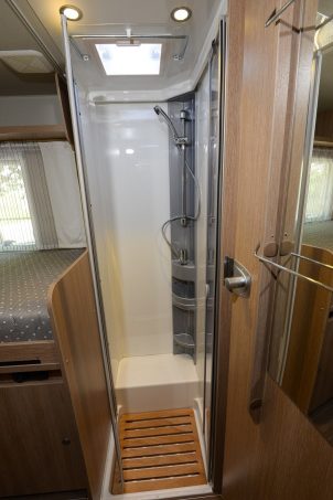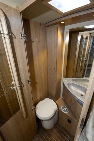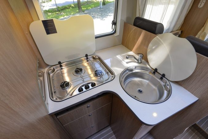 Le coin cuisine apparaît bien agencé (réchaud à trois feux en ligne, plan de travail et évier rond). La salle d'eau, à douche séparée est un plus, tout comme la soute, accessible par deux larges portillons, et équipée de rails d'arrimage avec œillets ajustables.
