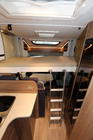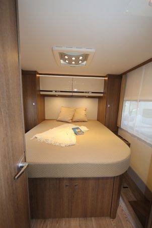 Le T 6757 a droit à un lit central extra large (185 x 150 cm) et un super matelas en mousse EvoPorecHRC mais seulement avec une moitié de sommier à lattes (de la tête au dos). Le lit de pavillon (1399 €) à commande électrique se montre moins généreux (200 x 100 cm) puisqu'il n'est réservé qu'à une seule personne. Sa mise en place gène le passage vers la porte de sortie. L'installation d'un lit d'appoint simple en dînette (165 x 105/75 cm) reste envisageable. Son confort ne vaut pas celui des deux autres.