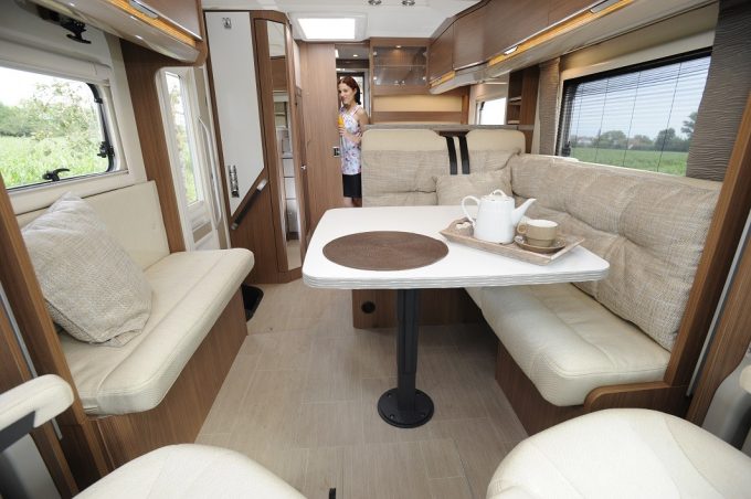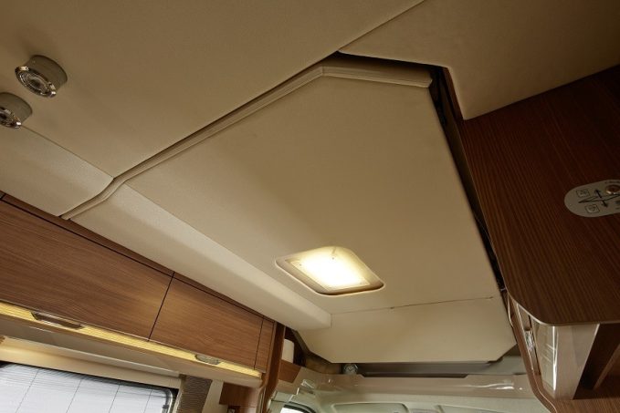 De série, vous disposez de la clim cabine, du régulateur de vitesse, d’un réfrigérateur de 145 litres, d’un Truma Combi 6, d’une porte cellule XL, et bien sûr de la commande électrique pour le lit de pavillon. Tout y est, ou presque… le Skyroof est en option (716 €).