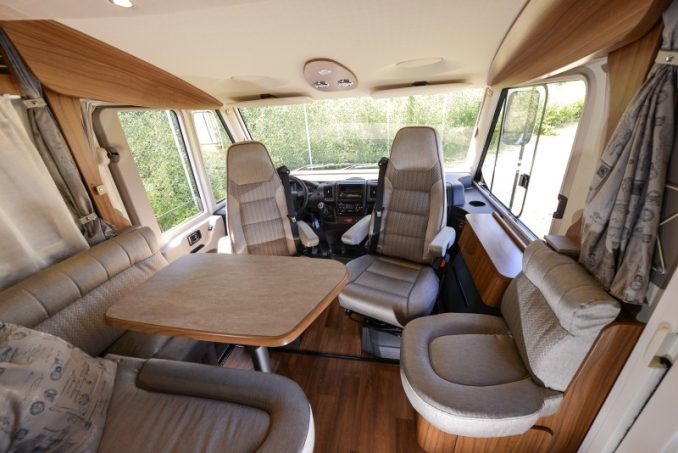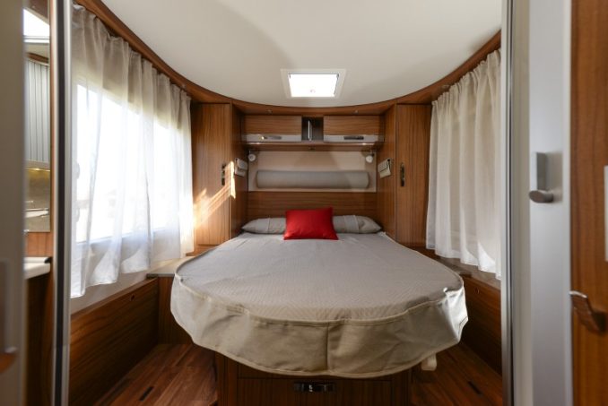 Homologué pour un usage à quatre, de jour comme de nuit, le B-598 Premium Line dissimule dans son pavillon avant un grand lit (195 x 150 cm) manœuvrable manuellement (électrique en option). Le poste de conduite reçoit un équipement complet avec la climatisation et un régulateur de vitesse. L'ambiance se veut chic avec un mobilier pommier Palatino, des portes de meubles hauts vitrifiés, des poignées à effet chrome noir, ou encore une sellerie tissus Messina avec habillage cuir autour de la banquette.