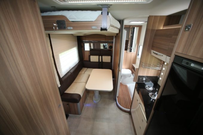 Parfait pour un usage en couple, ce modèle peut accueillir si besoin des invités pour une escapade à trois ou quatre personnes en réaménageant sa partie dînette (pied de table télescopique et électrique). Pour la route, les deux places passagers, repoussées complètement au fond (au niveau de l'essieu), seront toutefois à utiliser à titre occasionnel.