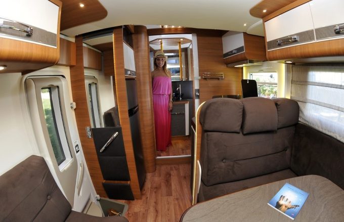 A l’intérieur, on est bluffé par l’ambiance très cocoon du salon. L’ergonomie soignée des banquettes est une invitation à prendre place autour de la table, dont le maniement du plateau est d’une grande simplicité, une seule manette suffit à le débloquer.