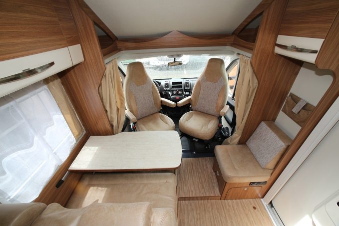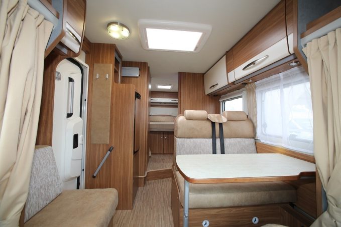 Bien que le T 339 soit un modèle court, sa pièce à vivre ne manque pas d’espace. Cinq personnes y séjournent agréablement. Pour obtenir un peu plus de lumière, il suffit d’opter pour le sky roof.