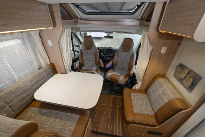 Le Sunlight 10 Years est identifiable à sa carrosserie gris métallisé. Cette teinte fait partie du pack Anniversaire. L’intérieur est aussi très marqué par les housses qui combinent le tissu et le cuir. L’implantation est classique. Le maxi-salon est ergonomique et confortable, les banquettes sont confectionnées en mousse haute densité, matériau qui garantit la qualité de l’assise.