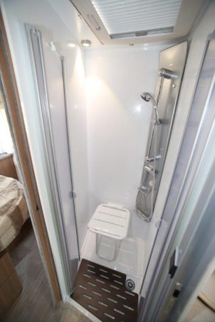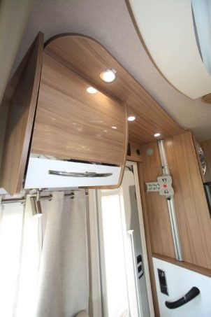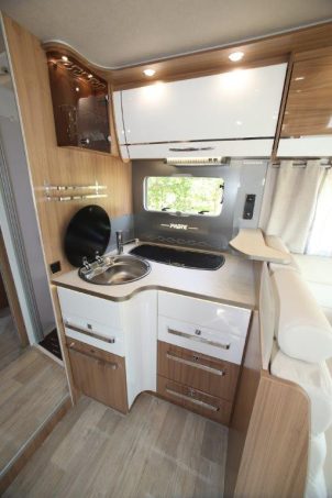 Côté équipements, l’éclairage à leds dispensé de toutes parts est, évidemment, un élément capital. C’est en cuisine, toutefois, que l’on goûtera avec le plus le plaisir de vivre à bord. Esthétiquement, le four apporte un vrai plus, mais à chacun d’en évaluer la nécessité. De notre point de vue, nous réserverions le principal de notre capital charge utile au chauffage Alde (28 kg), ce qui peut nécessiter de se contenter d’une finition Essentiel afin de préserver ses places carte grise.