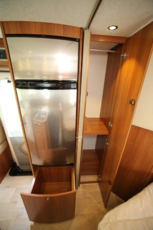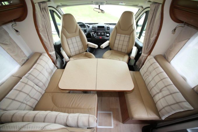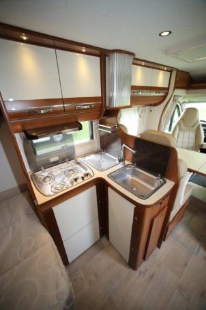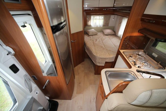 Comme tous les Migrateur, il profite d’un châssis Al-Ko, mais aussi de la clim’ route et, c’est nouveau, de stores plissés de cabine. La dotation de série dispense, par ailleurs, le meilleur confort à l’étape : grand réfrigérateur de 150 l, hotte aspirante, Tuma C4 pour assurer le chauffage et l’eau chaude, généreuse réserve d’eau propre (150 l), lanterneau panoramique au-dessus du salon. On apprécie la position du bloc cuisine en L, générant une belle surface de dégagement au plancher.