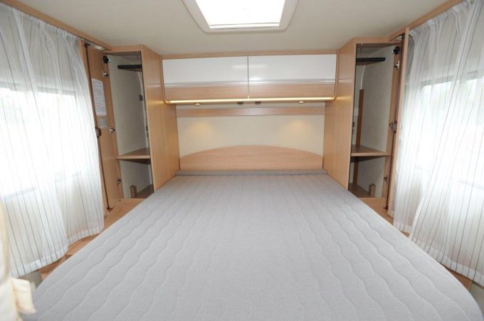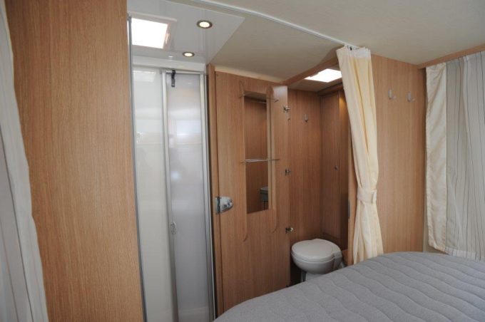 Le seul lit de série étant le lit permanent, il est normal que Sunlight lui ait apporté quelques soins. Outre sa dimension extralarge (190 x 150 cm), on peut se réjouir de la présence d’un matelas mousse haute résilience avec sommier à lattes. Les deux modules de toilettes sont bien intégrés dans la chambre. La douche indépendante est idéale, mais la porte du cabinet de toilette doit choisir entre la fermeture dudit cabinet ou de la chambre.