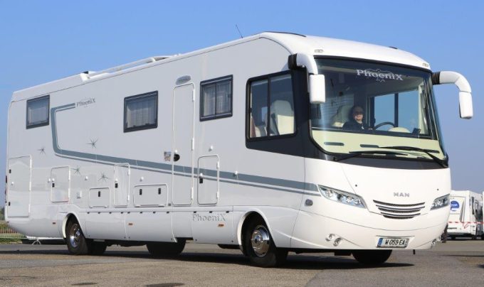 Quelques mots, enfin, sur l’agencement. Ce Phoenix dispose d’un double salon avec d’immenses banquettes, une longue table pour les réunions entre amis, et une dînette classique pour les repas en amoureux. La chambre met particulièrement en valeur le niveau de finition où l’éclairage par spots ou lumière indirecte est savamment étudié pour créer une sensation de douceur et d’harmonie. Le lit aux dimensions classiques (200 x 160 cm) peut être adapté aux souhaits du client. Le confort, l’espace et le chic de la salle d’eau font oublier que l’on se trouve dans un camping-car. La douche est en verre acrylique sanitaire illuminé par des leds, les toilettes céramique côtoient un sèche-linge, la vasque de toilette est dotée d’un miroir de maquillage. Les mitigeurs sont de haute qualité et, de plus, les réserves d’eau pouvant s’élever jusqu’à 460 l, inutile d’écourter le passage sous la douche.
